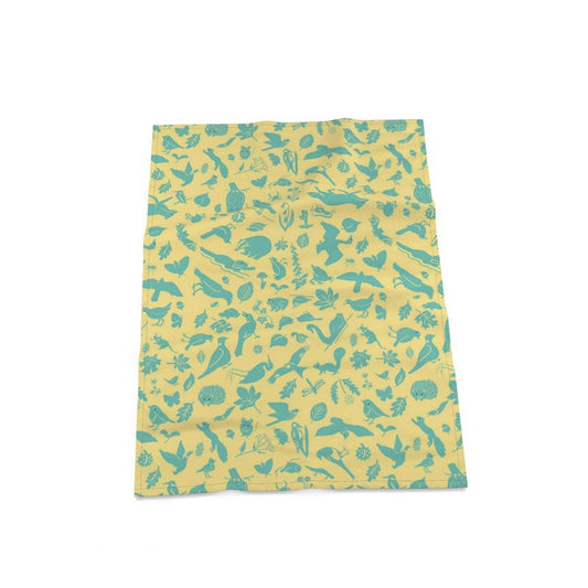 Aqua on yellow Urban Wildlife Tea Towel