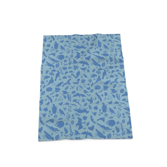 Cotton linen tea towel, blue Chilean animals design