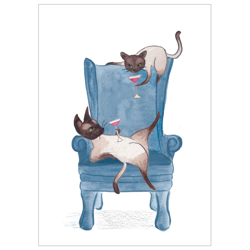 Time to relax with a glass of bubbly in your favourite red velvet armchair... if you're a sophisticated cat!
