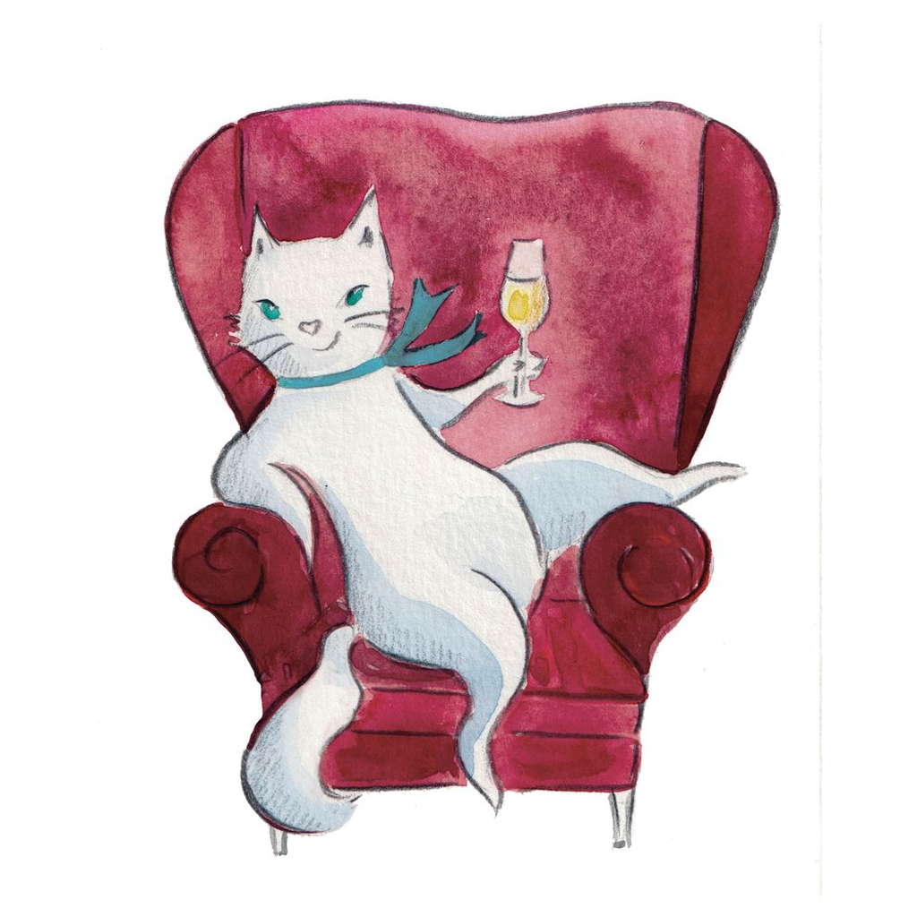 Giclee Art Prints White Cat with Bubbly